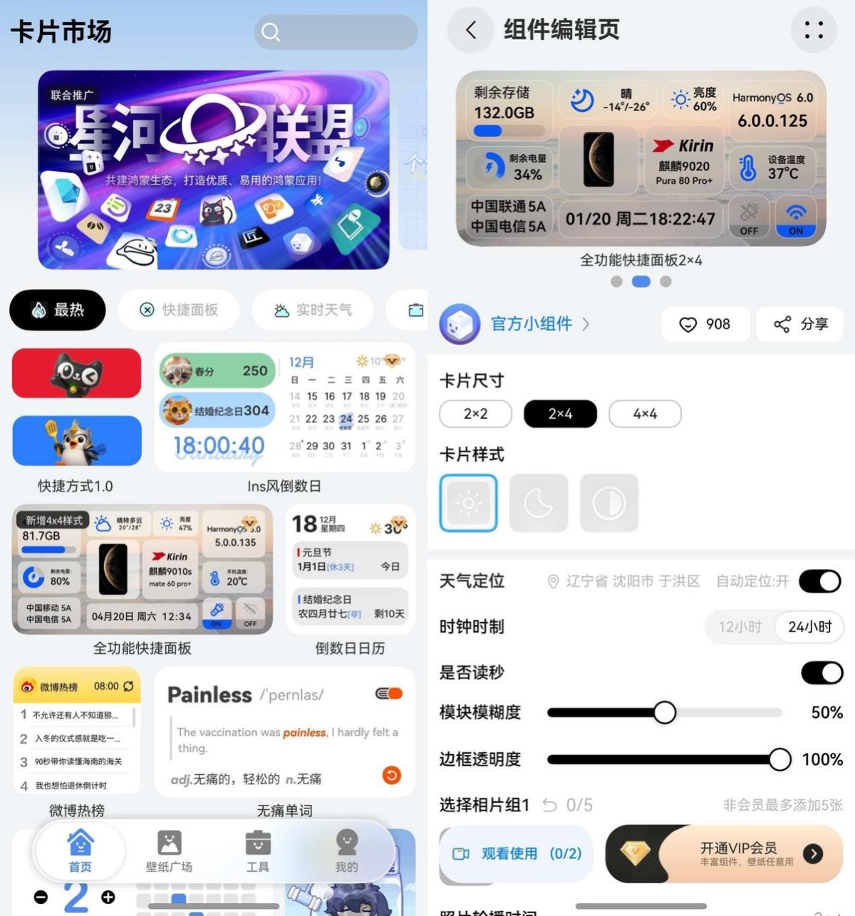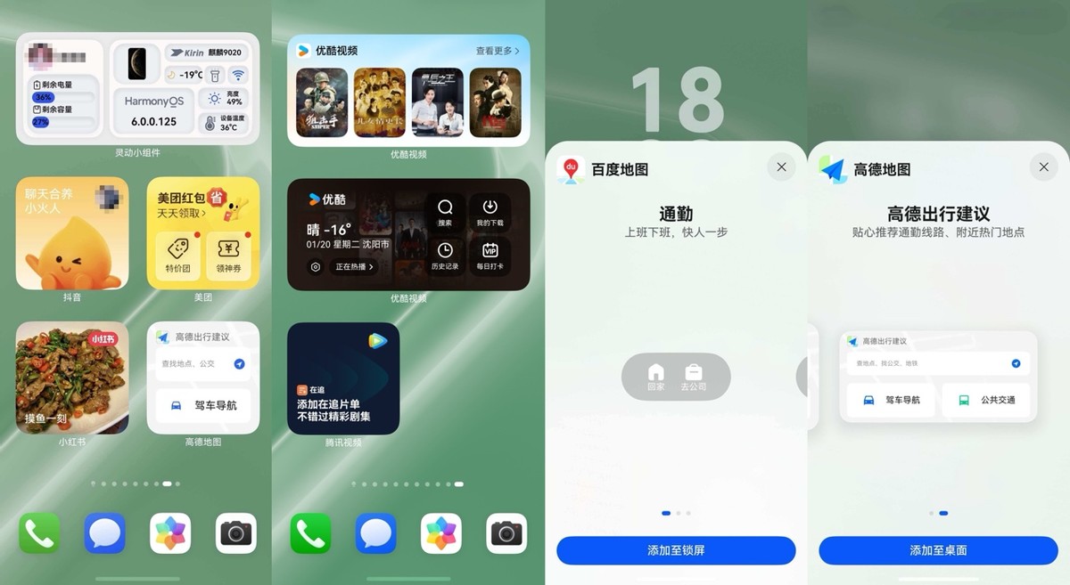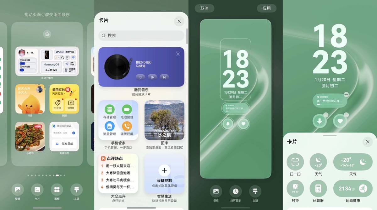 桌面卡片:只需在手机桌面上双指捏合,点击屏幕下方的“卡片”按钮,就能进入卡片库,浏览并添加各类鸿蒙版应用提供的特色卡片。也可以直接长按某个应用图标,如果该应用支持卡片功能,便会弹出相应的卡片样式供选择。
