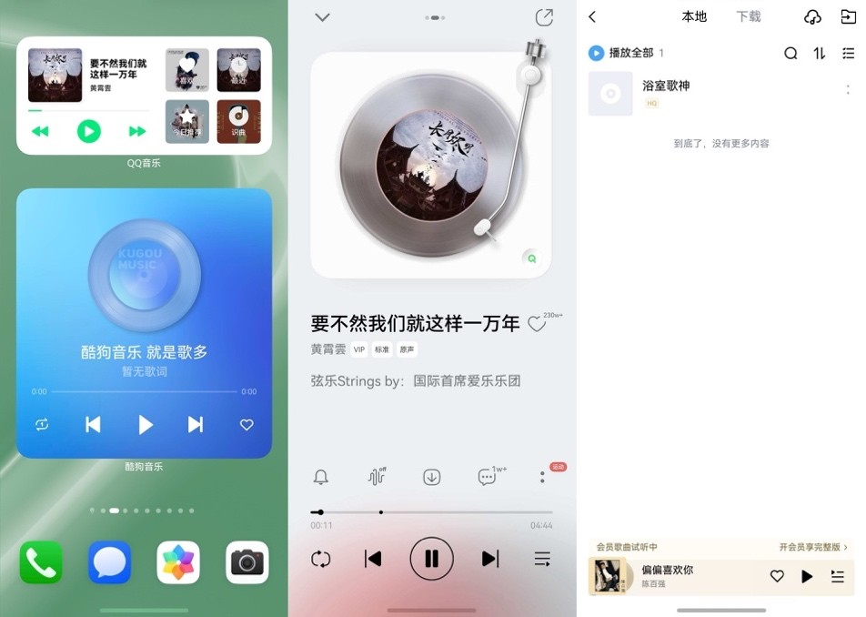 在家休息的时候,大部分人都会听听音乐放松心情吧~鸿蒙早就帮你把快乐“摊”在桌面或锁屏上了!鸿蒙版酷狗音乐锁屏卡片支持听歌识曲、收藏、本地、搜索功能,更为实用的是,TA的桌面卡片还支持个性化推荐,午后小憩或者做家务时,轻轻一点就能开启今日BGM。