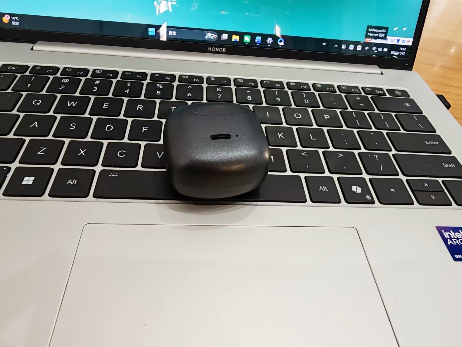 西圣 Plume 耳夹式耳机的充电盒设计的非常简单小巧,从正面可以看到其logo,在背面可以看到Type-C充电口。