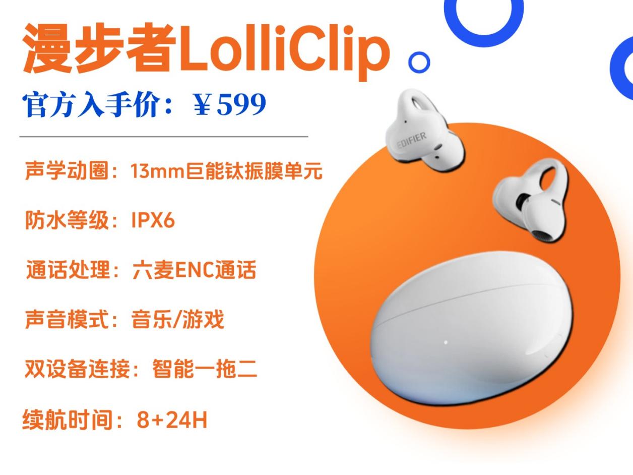 漫步者 Lolli Clip价格:599元推荐理由:适合办公通勤,通话清晰,长时间佩戴也很舒服