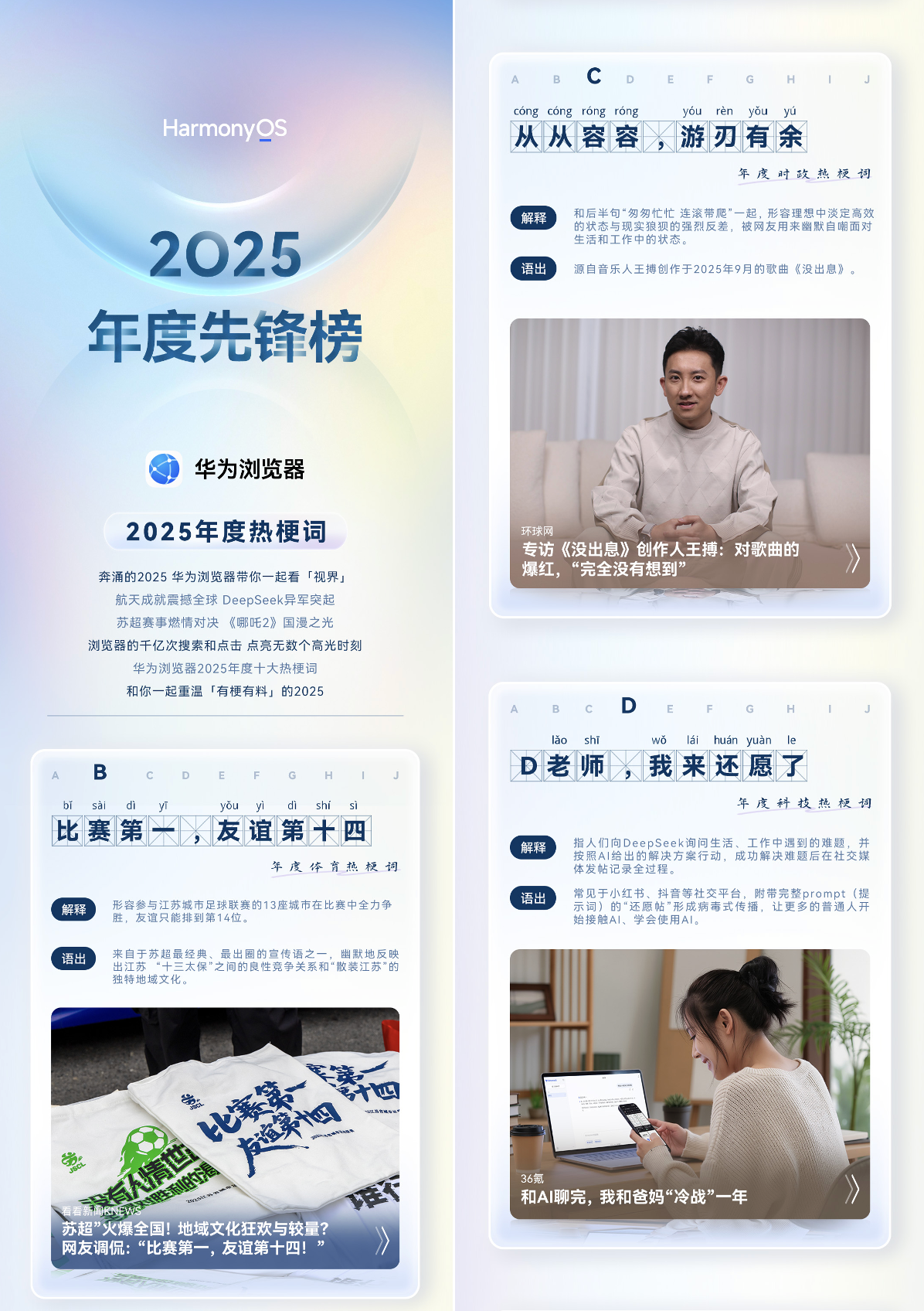 刚刚看到2025年度先锋榜刷屏,不免有许多感慨。特别是华为浏览器榜单列的十个热梗词,很多都是我爸妈这一年来问过我的东西,那些曾经一起抱团畅聊的瞬间也全都涌现出来。比如"比赛第一,友谊第十四"那个梗,是我爸在小区棋牌室听牌友说的,回来问我啥意思。我不好解释,于是用华为浏览器搜了一篇相关的体育新闻,AI问答三两句就把热梗的来源有理有据的讲清楚了,果然是“上网冲浪外挂”,无论看新闻还是查资料,都能迅速Get关键信息。