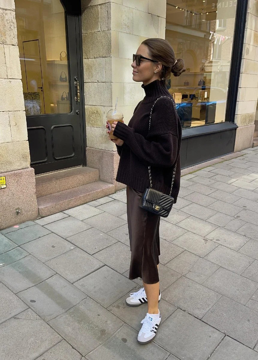 在今年的秋天之季,一抹浓郁香甜的巧克力棕色系又成为了秋季穿搭最时髦的色彩之一,时尚名模和博主都在穿,穿搭率极高,轻松穿出好气色,正如秋天的季节里一抹最浓郁可口的“焦糖巧克力”,温柔显气色。