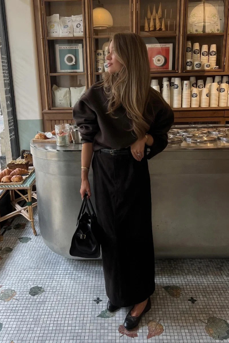 搭配同色系的上装或者是半裙,也可将不同的巧克力棕色系,利用不同的棕色系面料和材质,搭配出层次分明的视觉效果,经典简约易搭配,时髦而不张扬,高级显气质。