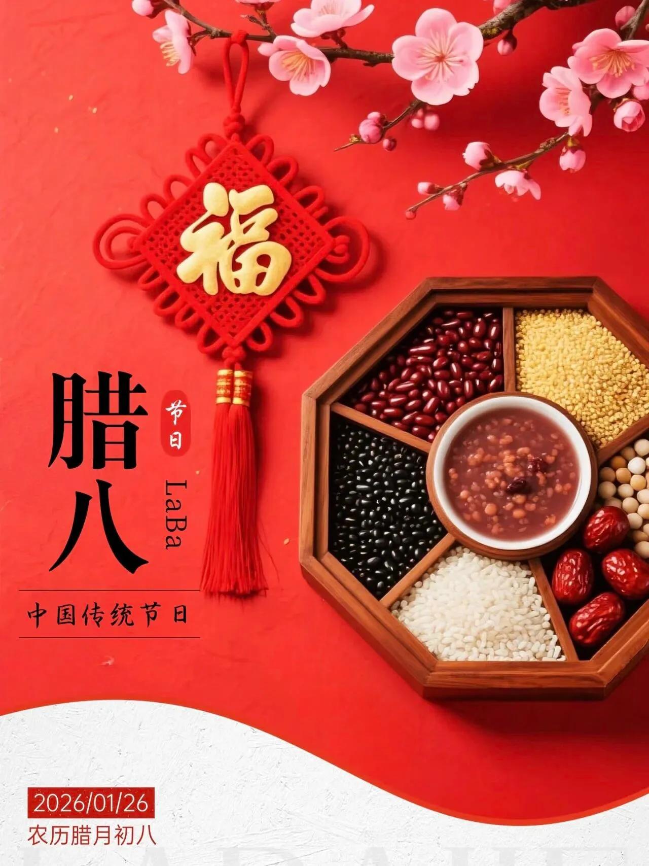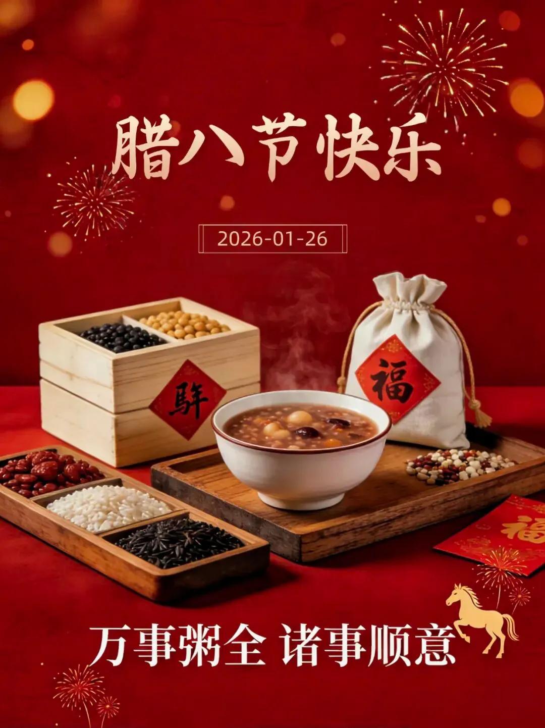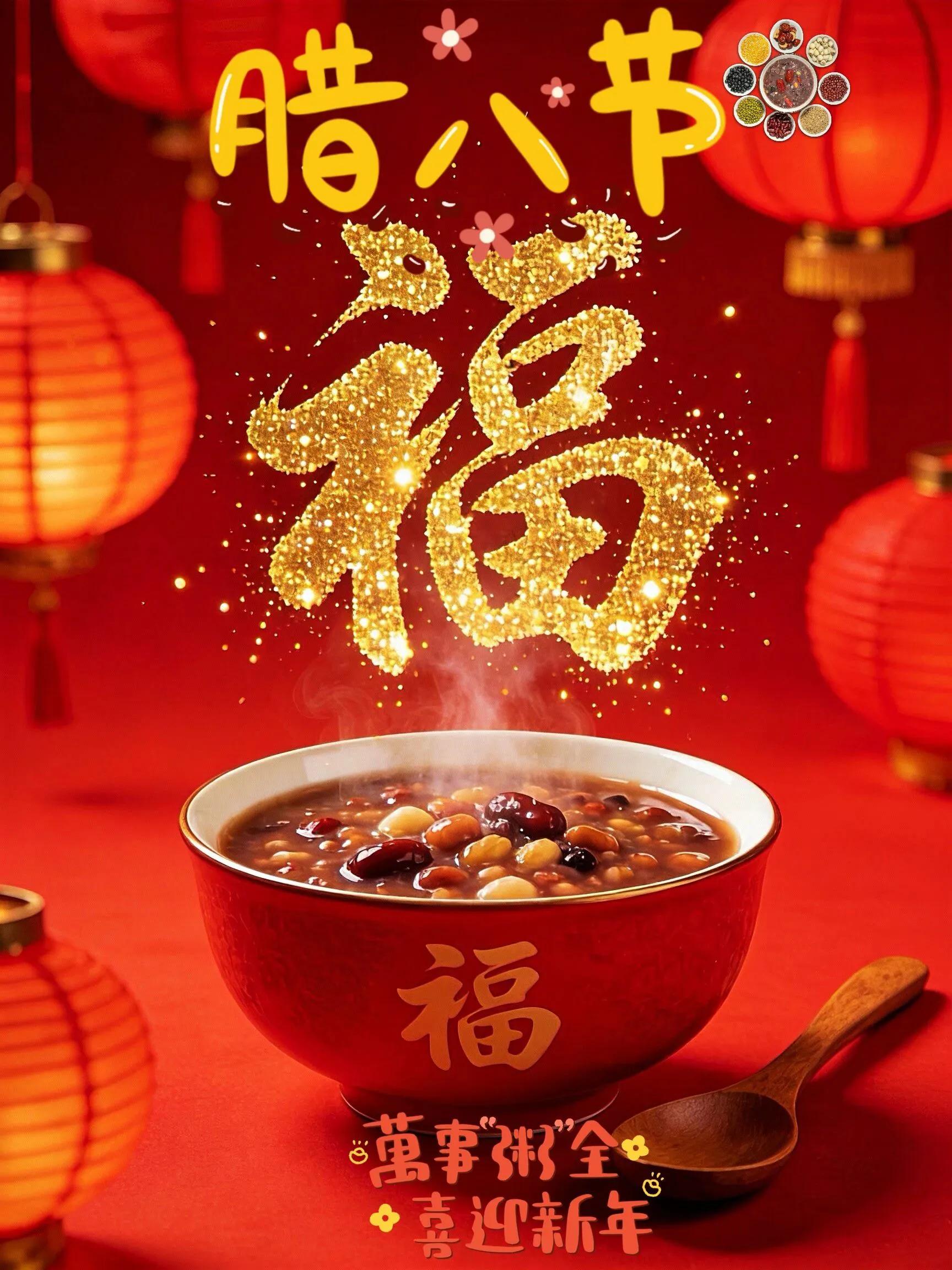 腊八到,粥香浓,福气满,喜盈门,祝腊八安康,万事如意