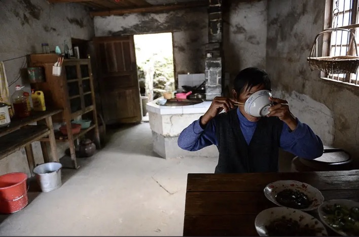 村长不在,他的小老婆给我冲了一碗糖水喝。