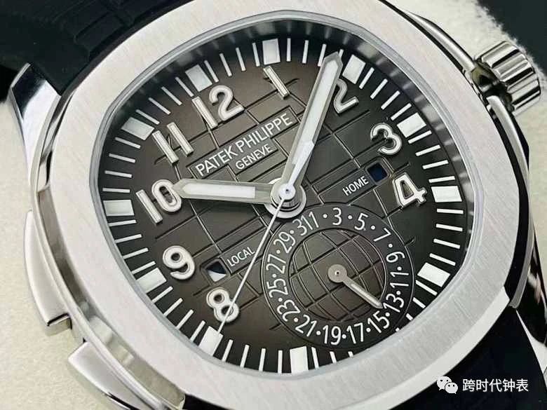 40.8MM表径,依旧采用百达翡丽经典不锈钢材质打造,圆润的八角壳型恰到好处。配备两枚时针(指示当地时间和原居地时间)、日/夜显示盘和指针式日期显示,简洁的表面布局,让两地时间一目了然。黑色浮雕表盘,金属立体字块,覆荧光涂层时标。3、9点钟分别显示”HOME”与”LOCAL”的方形昼夜视窗,蓝白二色各自代表晚上与白天,6点钟位置是指针式的日期盘。