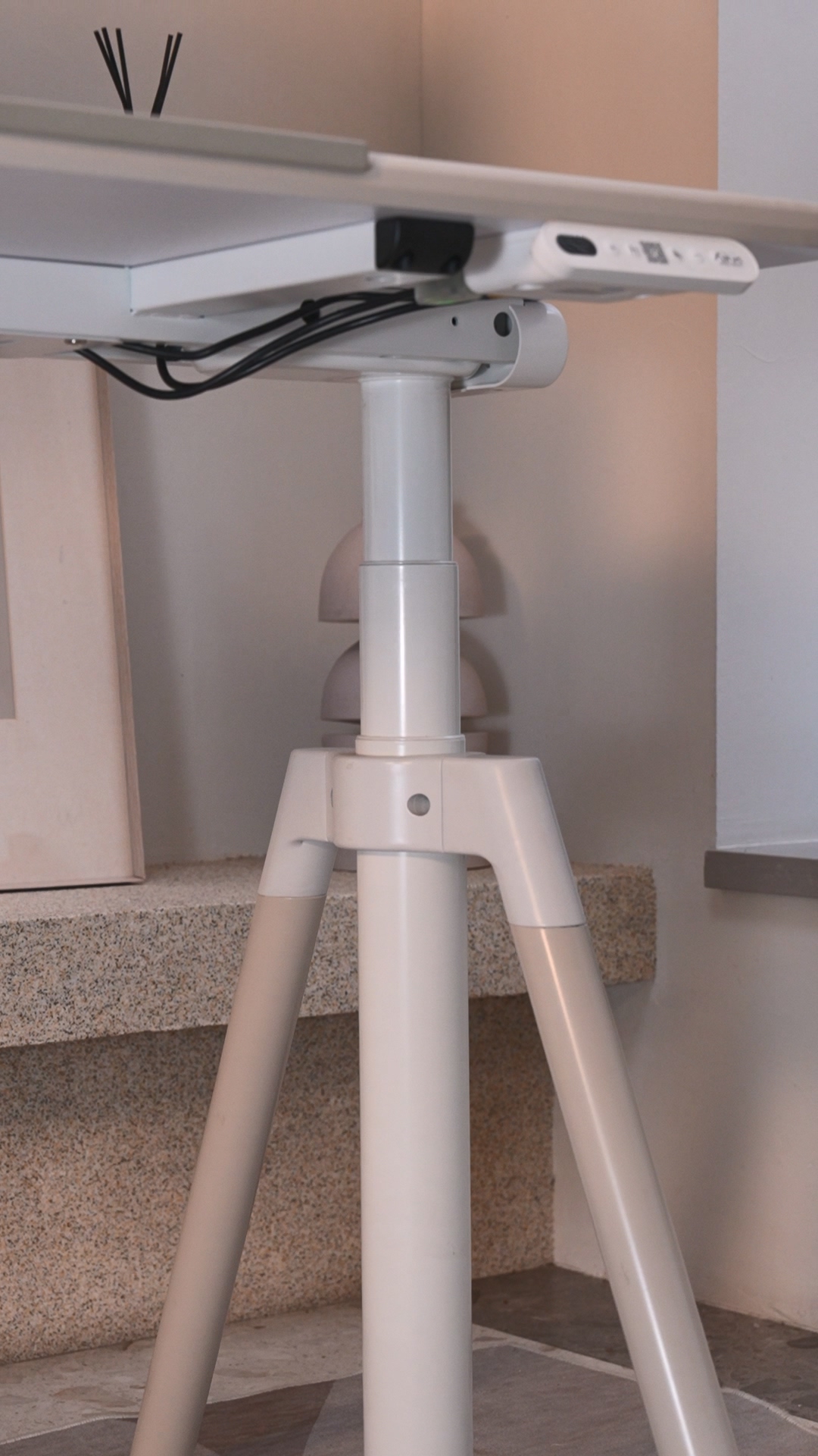 之前用的单电机升降桌,一调节就 “嗡嗡”响,好几次打断孩子上网课。爱琳这款是隐藏式双电机,实测调节时噪音只有38分贝,比我敲键盘的声音还小,孩子写作业时我站着办公调节高度,他都没抬头问过“妈妈你在干嘛”。