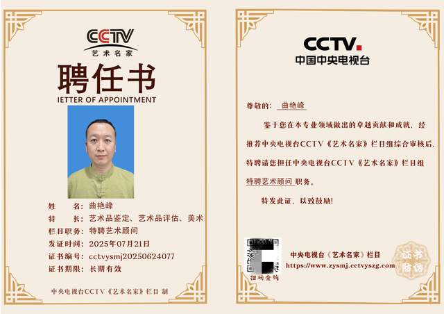 曲艳峰(又名曲云峰)男士,是当代中国艺术领域备受尊崇的专家,集玉石艺术品鉴赏家、评估权威、资深美术家、非遗传承人等多重身份于一身。