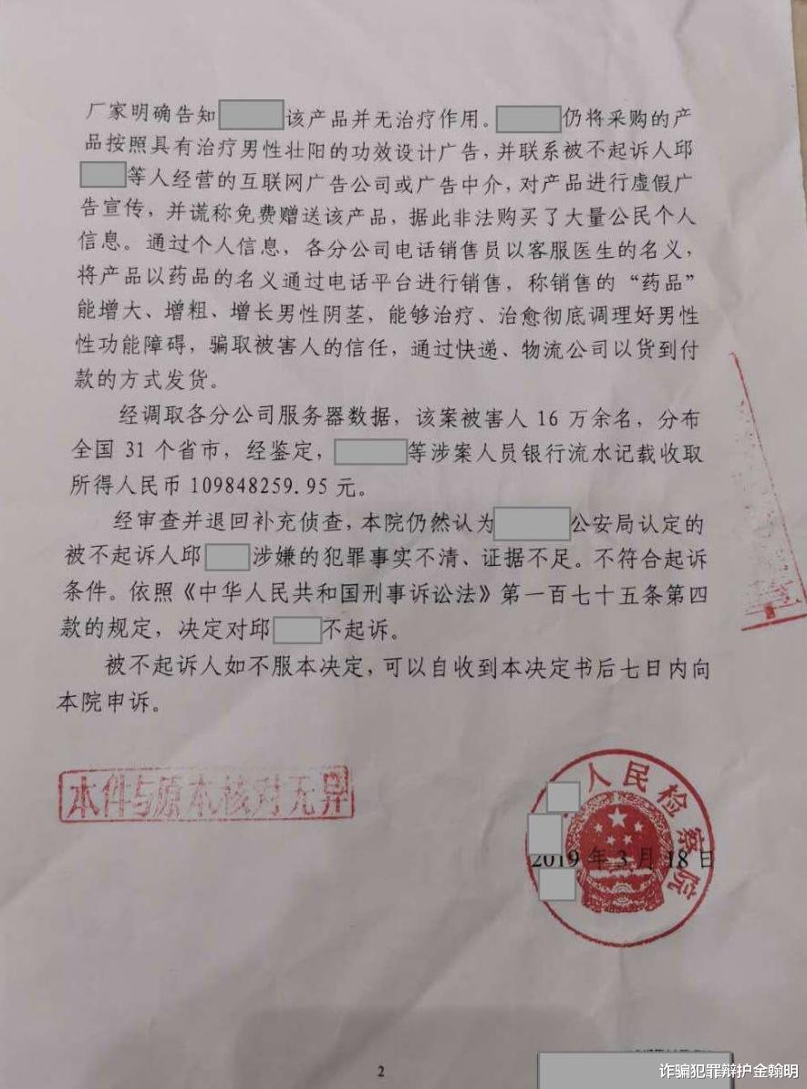 4.辽宁省邱某被控(保健品)诈骗罪→侵犯公民个人信息罪一案(不起诉,无罪)