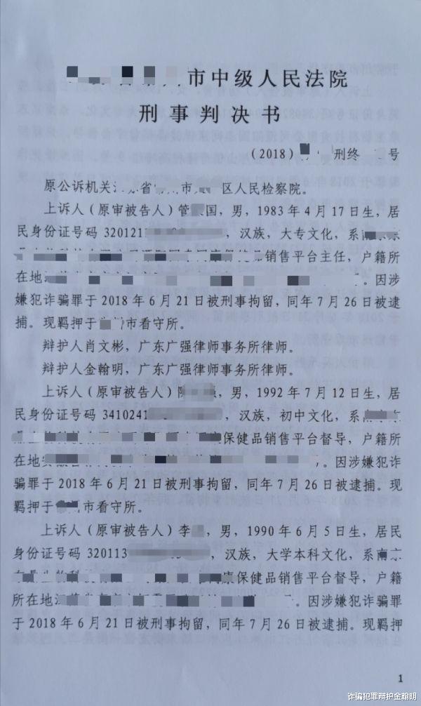本案是2018年中央电视台、人民日报等媒体报道的江苏省最大的保健品诈骗案,我们在二审阶段介入本案,通过与当事人会见沟通了解到,涉案公司具备销售保健品的资质、营业执照,采购的产品是正规厂家生产的三证齐全的合格保健品。同时涉案公司有相当比例的退货退款记录,但问题主要是销售手段方面的夸大宣传、虚假宣传等方面,本案涉及到如何在辩护中对民事欺诈行为与刑事诈骗进行区分。为此,我们向二审法院提交《二审开庭申请书》《收集、调取证据申请书》《二审辩护词》等100多页的书面辩护材料,最终二审法院采纳了辩护律师的意见对案件改判,当事人刑期降低近一半。