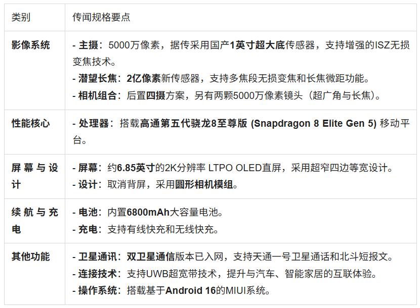 如上综合目前多个数码博主的爆料信息,小米17 Ultra作为小米数字系列的“超大杯”旗舰,预计在影像、性能和通讯方面都会有显著提升。