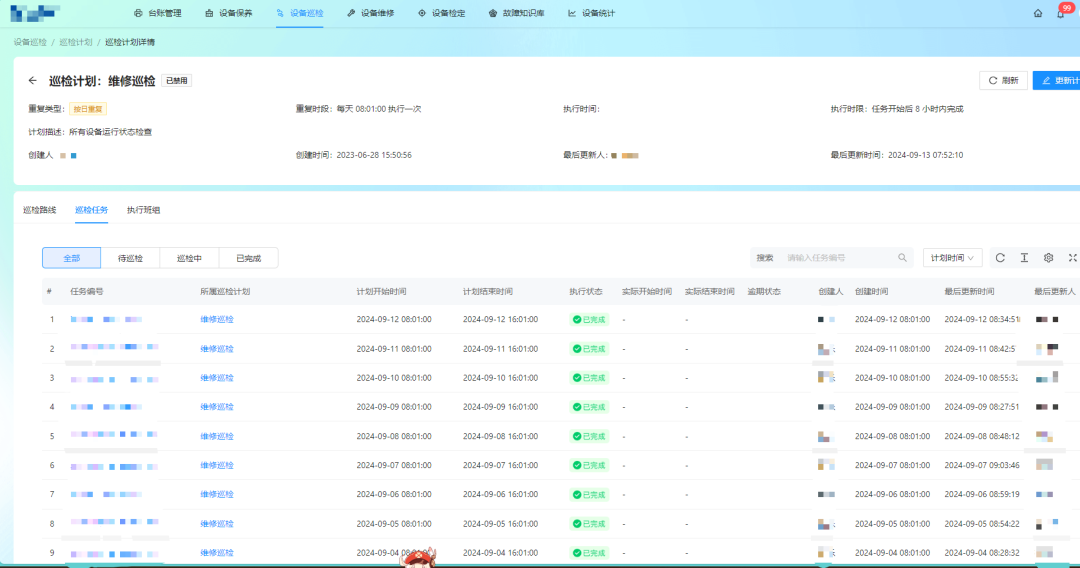 同时,平台可固化巡检标准与流程,将设备巡检的操作规范、判断标准嵌入系统,新员工只需按照系统指引即可完成巡检,解决了传统巡检“经验依赖、标准不统一”的问题,实现巡检工作的标准化管理。