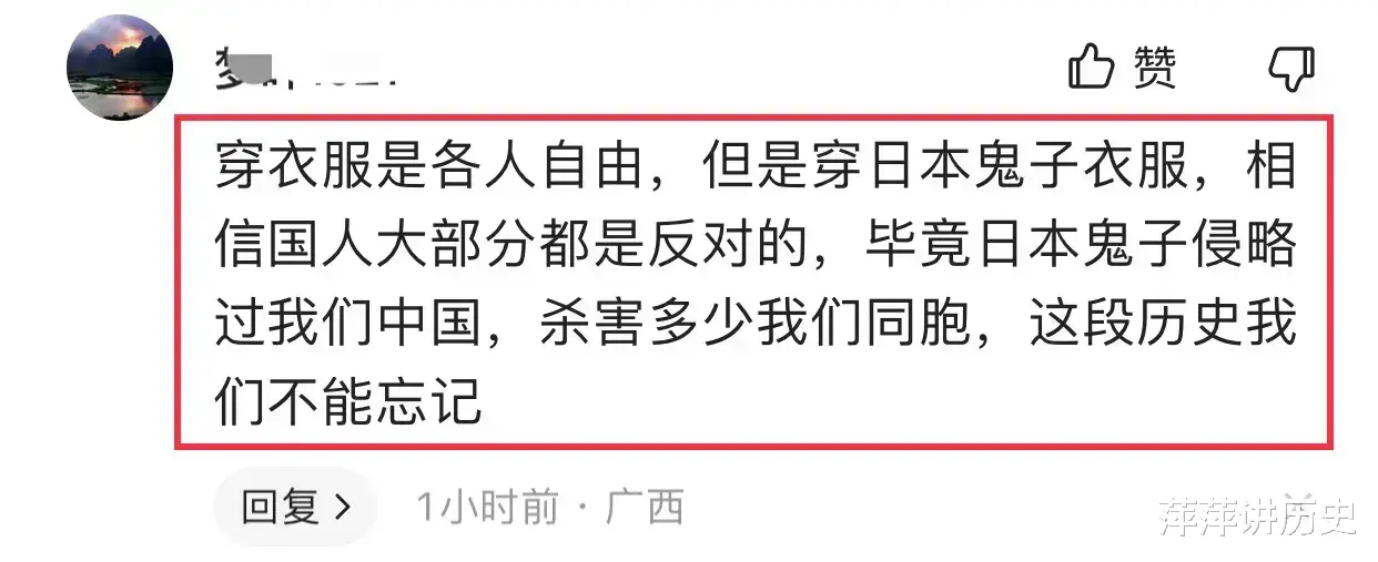 对于女子的行为,有网友表示,虽然穿衣自由,但是前提是不能伤害国人的民族情感,以及民族大义。