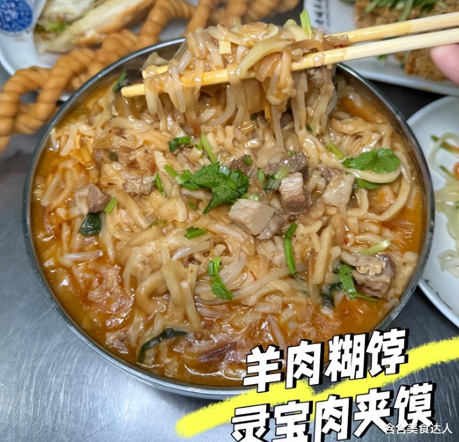 灵宝羊肉糊饽是当地极具特色的传统美食,深受本地人和游客喜爱。它以烙饼条为主料,加入羊肉、粉条、豆芽等配料,用浓郁的羊汤烩制而成,饼条有韧性,吸饱汤汁后口感香浓醇厚。在灵宝,羊肉糊饽被视为比羊肉汤更“地道”的招牌小吃,尤其适合秋冬滋补。