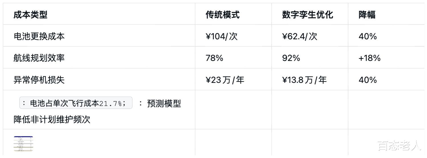 → 基于成本模型:中型无人机单包裹成本¥1.61,电池折旧占64.6%(¥10.4/次)。成本降低40%可使终端定价下降15-18%,增强市场竞争力。``