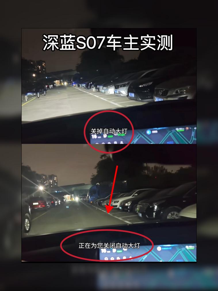 一位开深蓝S07的车主,在夜间道路行驶测试语音是否能关闭大灯时,说“关掉所有灯光”时车机并不响应,但给出“关闭自动大灯”的指令后,车机就立刻熄灭了大灯。从另一位小鹏P7车主的测试视频来看,说“关大灯”车机并没有反应,但如果发出的是“关闭近光灯”指令,小P也能在行驶中同样执行操作。