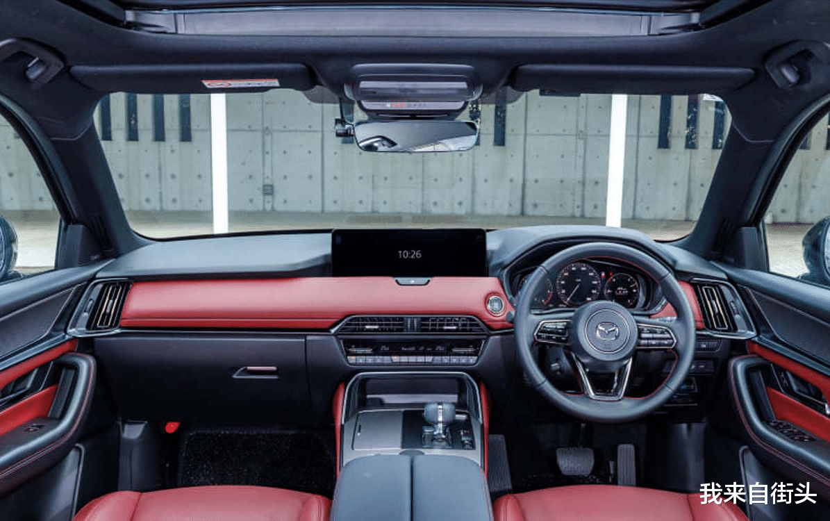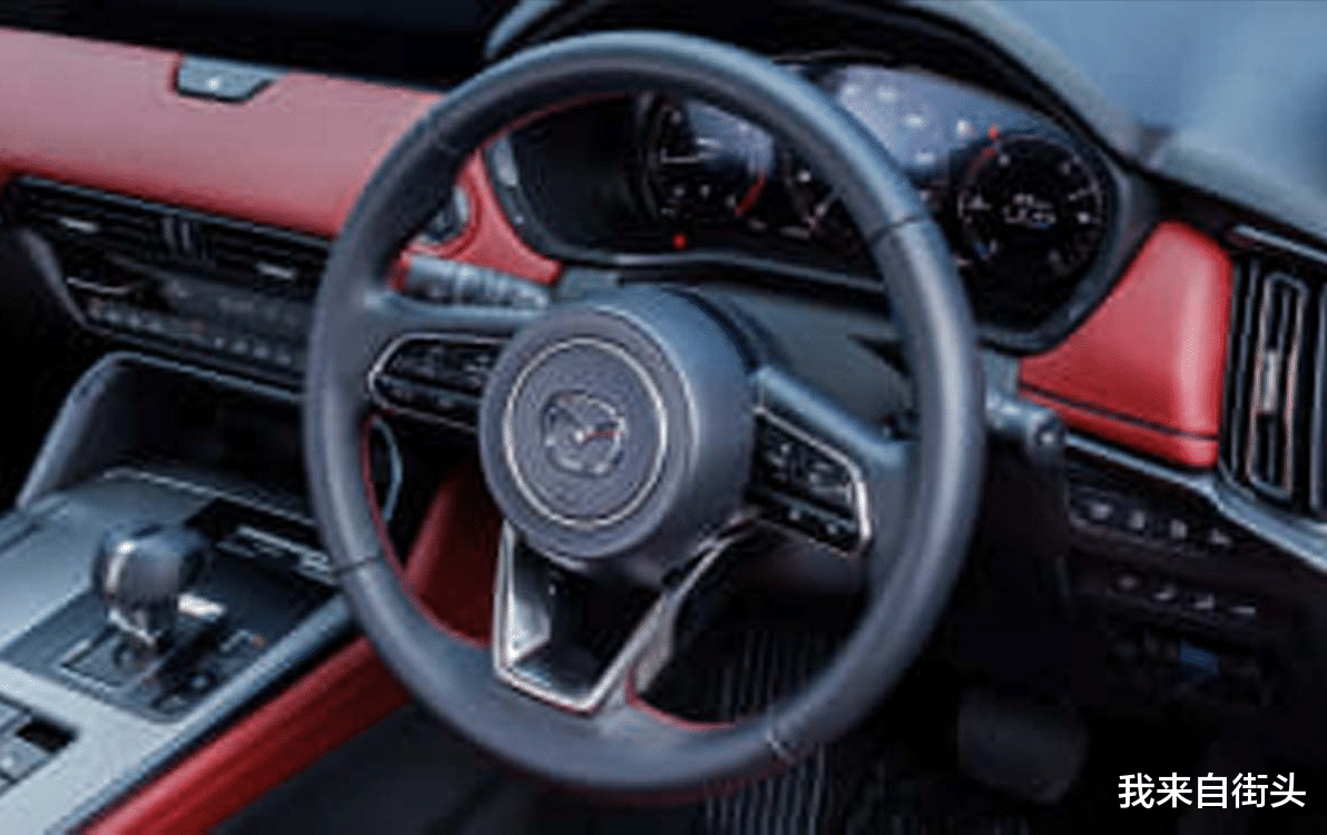 内饰部分,这次新增的Burgundy红色Nappa皮革套件,可以说是整台车最有“情绪价值”的地方。红色缝线贯穿方向盘与门板,加上金属饰件点缀,让CX-60在豪华与运动之间找到一个不错的平衡点。12.3寸全液晶仪表依旧是全车系标配,科技感维持在线。