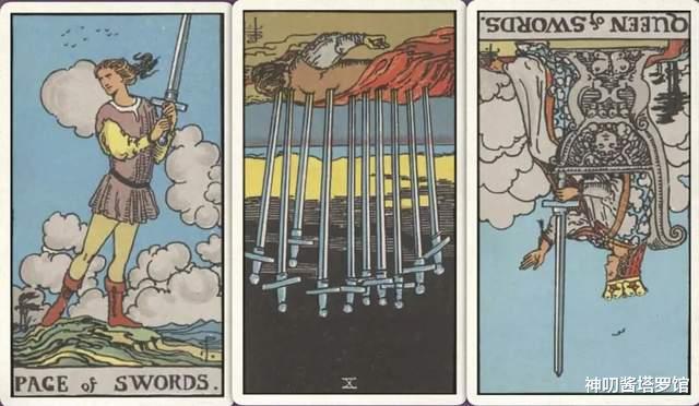 牌:宝剑侍从+ 宝剑十- 宝剑皇后-