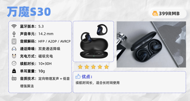 过分夸大音质和延迟表现的产品,实际体验往往与宣传不符。当然啦!这些年开放式式耳机真的越来越火,无论是通勤还是跑步,都能看到很多人悄悄把入耳式换成了更轻松、不堵耳的开放式。