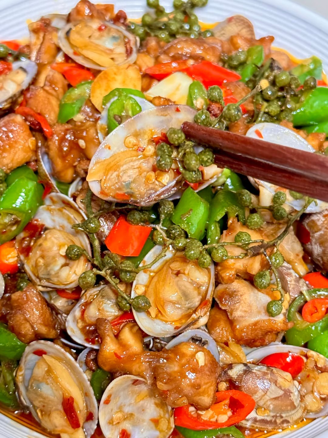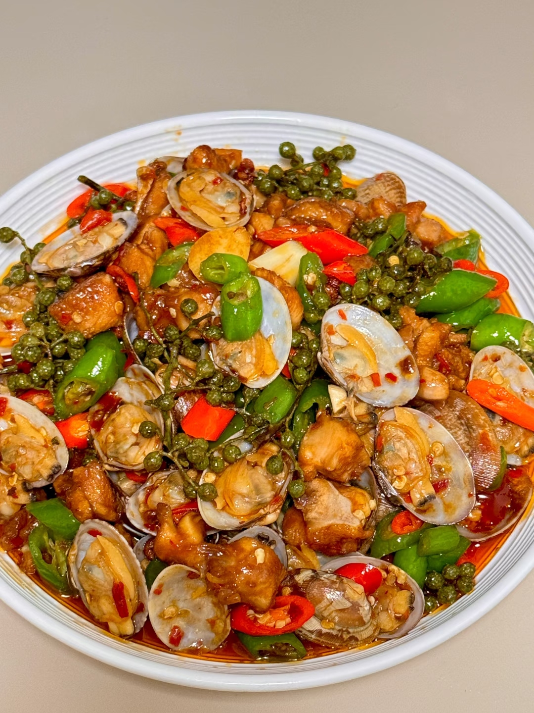 后记:这道菜最神奇的地方,是它能让挑食的孩子主动夹菜,让沉默的餐桌变得热闹,让平凡的夜晚闪着光。下次当你说“今天不知道吃什么”时,不妨试试这道青花椒蛤蜊鸡——毕竟,能让全家人举着筷子等开饭的魔法,每个厨房都该拥有。毕竟,幸福有时候,就藏在一锅麻香四溢的美食里呀!