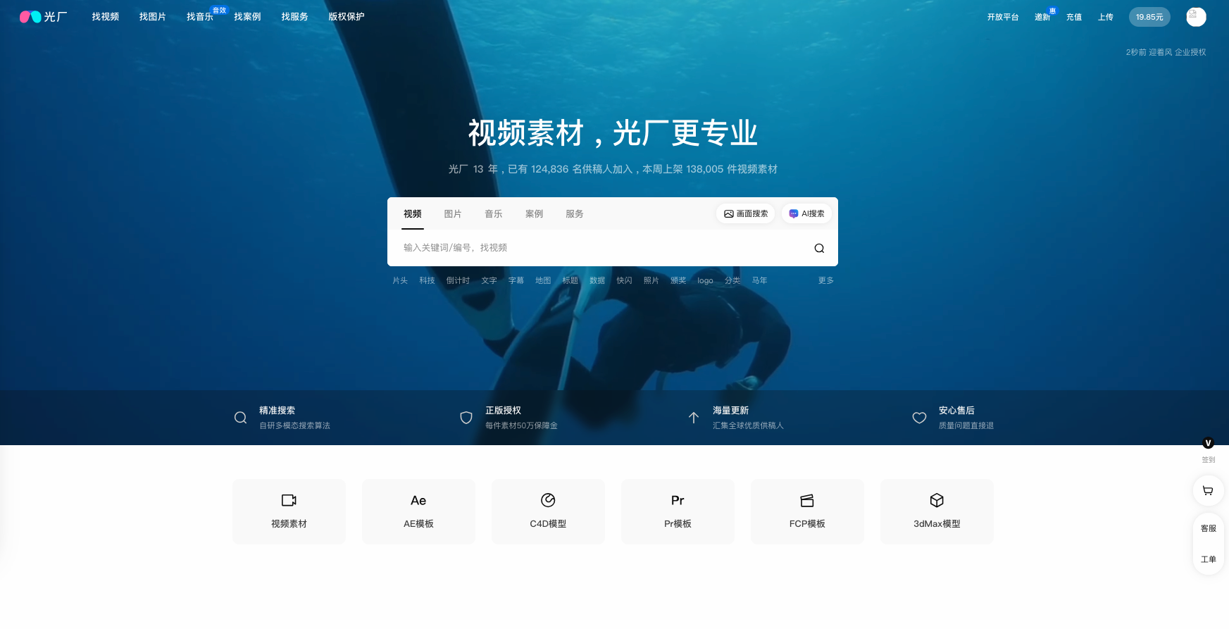 该平台采用"会员订阅+单件购买"混合模式,年度会员(299元/年)可无限下载标清素材,高清4K素材则按使用场景收费(宣传片单次授权50元,网络传播终身授权150元)。其"设计师共创计划"吸引了大批自由职业者入驻,每周更新的"本周热门合成模板"能直接套用到短视频制作中,让普通创作者也能轻松实现专业级视觉效果。