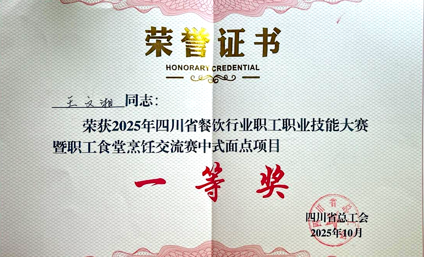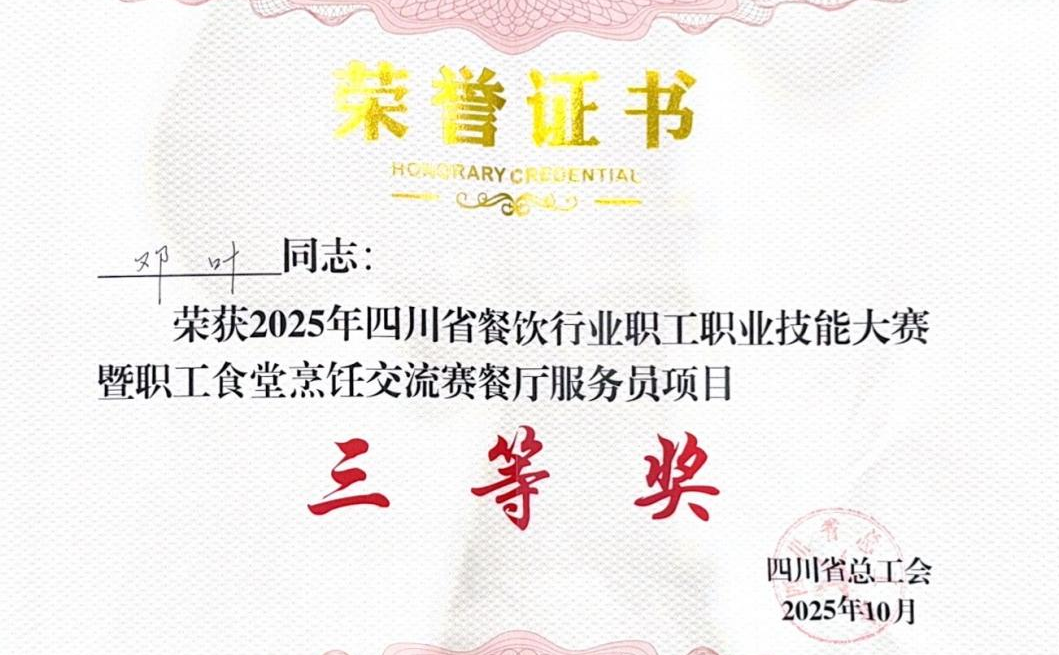 近日,在四川省总工会主办的2025年四川省餐饮行业职工技能大赛暨职工食堂烹饪交流赛中,梓潼县七一高级职业中学校中餐烹饪与