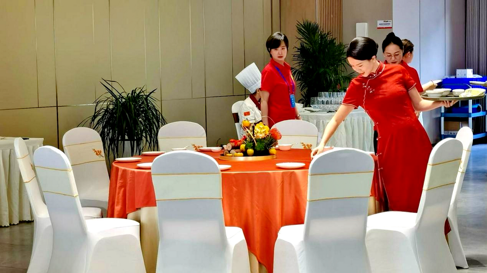 比赛中,两位教师展现了深厚的专业素养与沉稳的赛场风范。王文湘老师在制作“竹笋酥”时,从选料到成型,每一步都精准把控、精益求精,成品色香味形俱佳,赢得评委一致赞誉。邓叶老师亦以扎实功底与创新思维,在高星级饭店运营与管理类项目中脱颖而出,彰显了学校教师团队的综合实力。