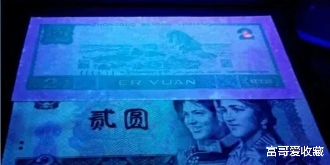 (我们在荧光灯下面,可以看到整张纸币,泛着强烈的绿色荧光。)