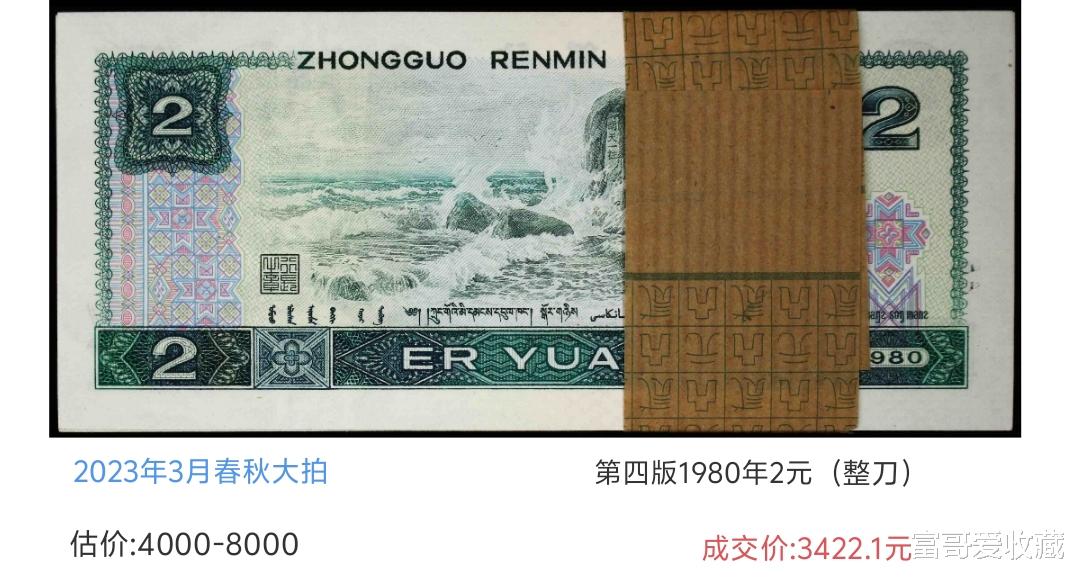 上面这种整刀的100张连号,最后拍出3422.1元。