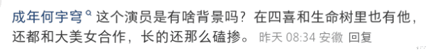 接不上戏,质疑演员是不是有背景,带资进组的?总之,差评满满。