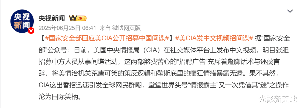 如今回头再看这条让CIA沦为笑柄的新闻细思极恐,因为在那之后也陆续看到一些国外间谍被抓捕、国内敏感岗位工作人员被渗透试图向境外传递资料被发现的新闻,深感间谍活动不仅危害国家主权,还会渗透到普通人的工作、生活中,真的离我们越来越近,甚至有可能不经意间,就已经“中招”了。