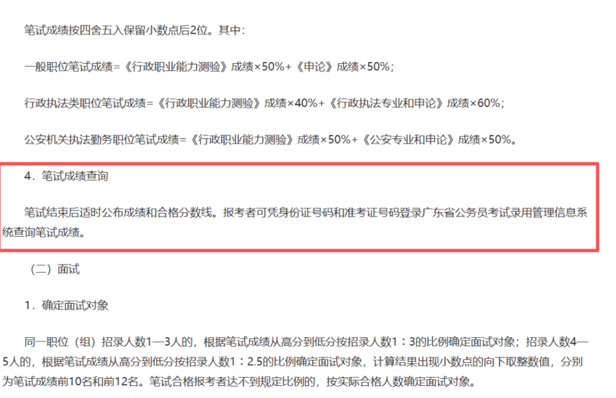 2026广东省考公告中并未明确提到笔试成绩查询时间。根据往年的时间安排,可以看到广东省考的笔试与成绩查询间隔在17-26天。回顾历年广东省考成绩发布时间: