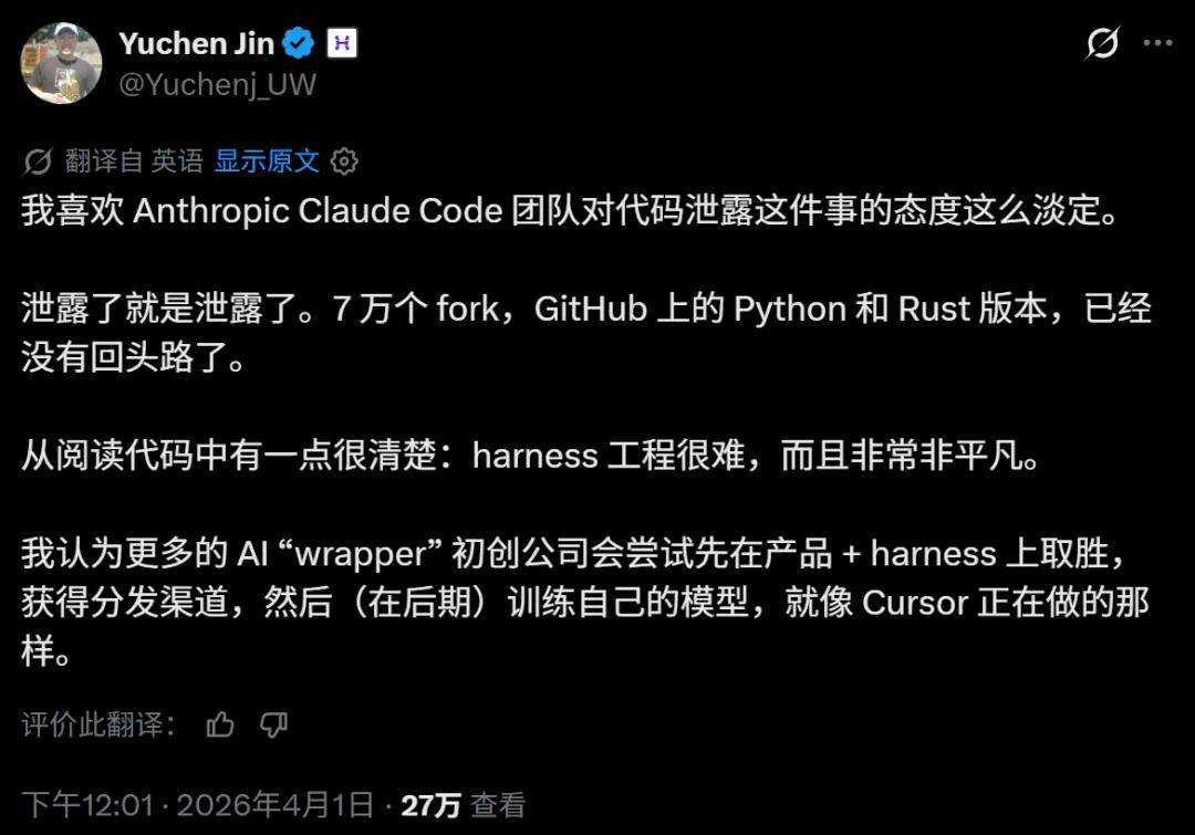 上个月底,Anthropic 的 AI 编程智能体 Claude Code 源代码意外泄露,业界在围观之下无不发出感叹:「Harness engineering 真是太难了。」