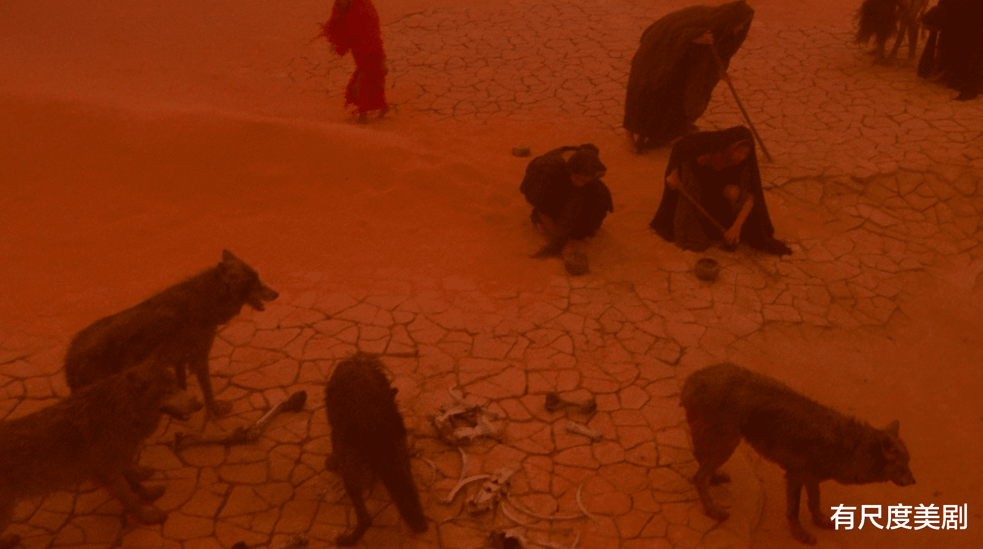 开场便引入一个类似寓言的故事,红蓝滤镜交叠蛮荒沙漠与古树,摄魂双眸的大黑豹剪影,神秘与诡谲的气氛顿时拉满。