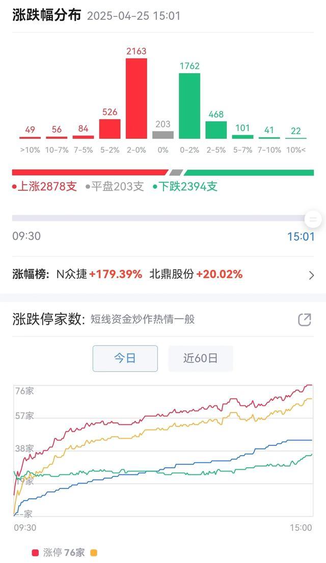两市上涨个股2,729只,上涨比率53%(可交易个股)。不含当日上市新股,76只涨停,35只跌停。