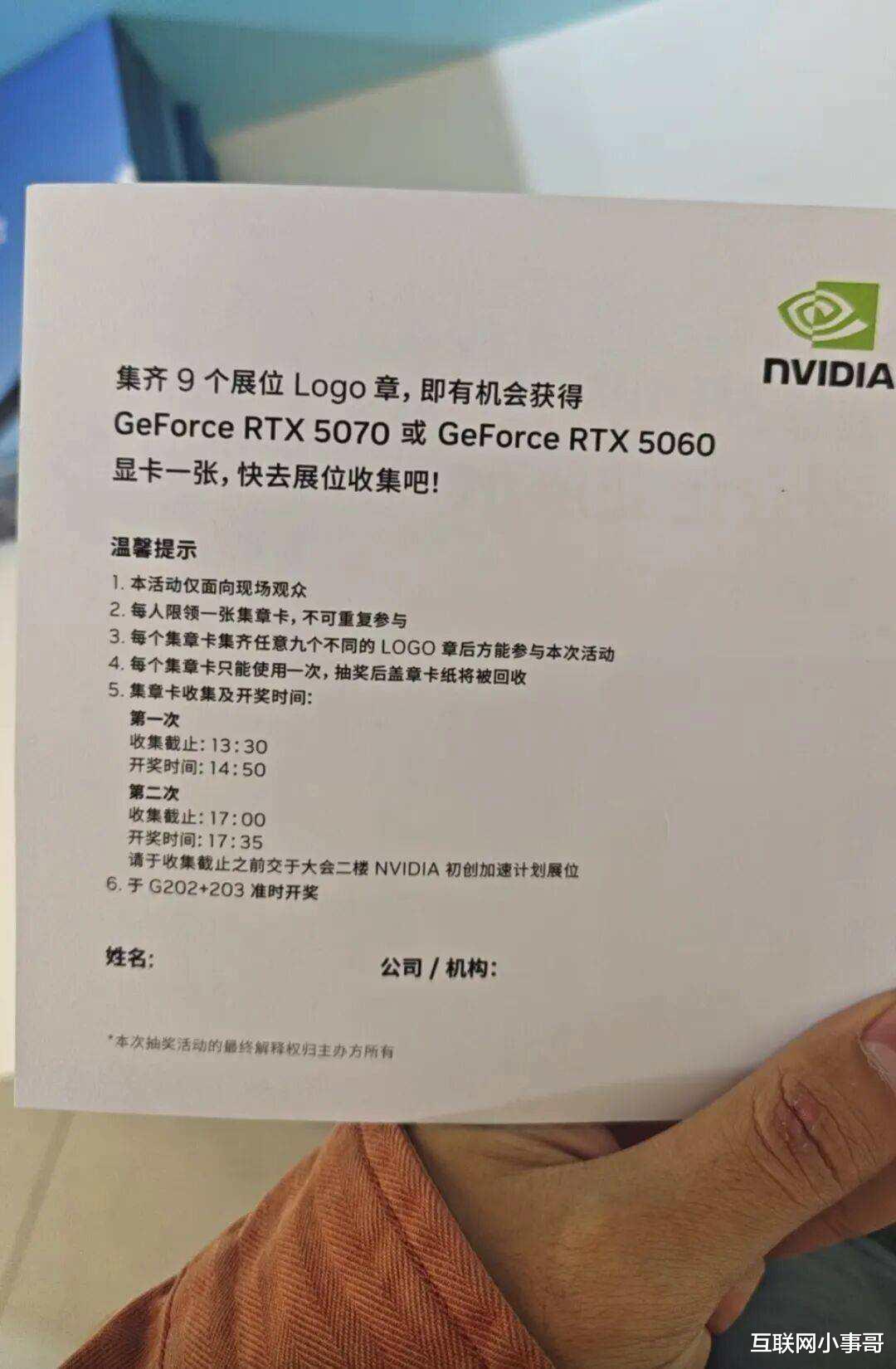 活动现场设有一项针对“现场观众”的集章抽奖环节。小金利用活动间隙完成盖章流程,意外抽中一张价值约3000元的GeForce RTX 5060显卡。根据活动规则,每人只能领取一张集章卡,参与者限为现场观众,并无任何单位或公司限制。