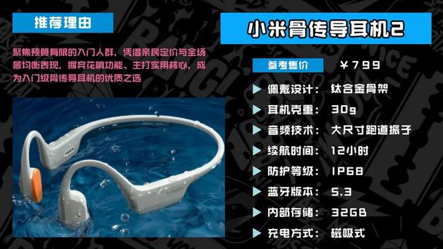 小米骨传导耳机2以亲民的价格,为用户提供超出预期的实用体验,是入门级运动骨传导耳机中的优选机型。