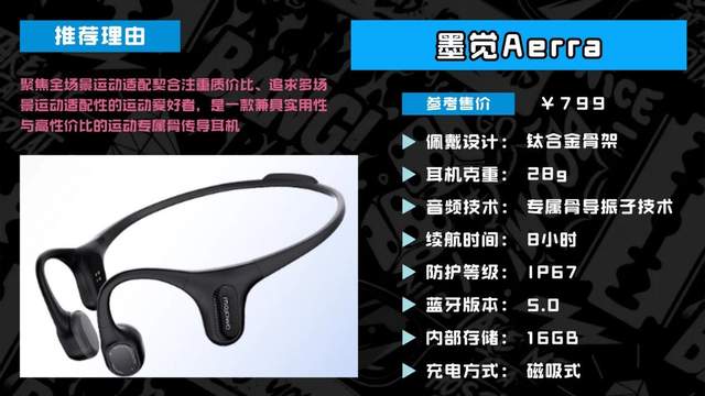 墨觉Aerra聚焦全场景运动适配契合注重质价比、追求多场景运动适配性的运动爱好者,是一款兼具实用性与高性价比的运动专属骨传导耳机。