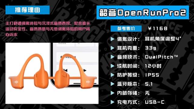 韶音OpenRunPro2主打舒适佩戴体验与沉浸式音质表现,契合追求运动安全性、音质质感与无感佩戴体验的用户核心诉求。