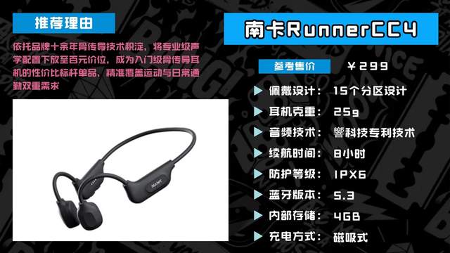 南卡RunnerCC4依托品牌十余年骨传导技术赋能,以“全场景适配”为核心亮点,兼顾运动强悍性能与日常舒适体验,成为入门级市场高性价比的实力之作。