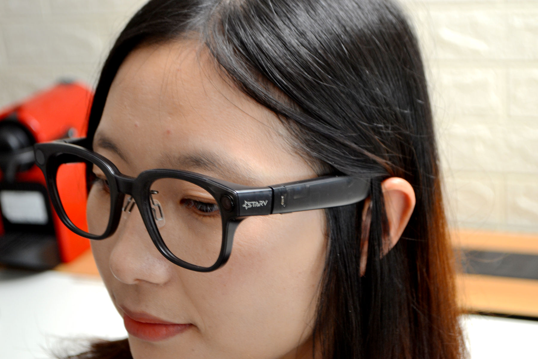 此外,魅族StarV Snap还内置了扬声器,其实类似于蓝牙耳机的功能,音双开放式定制扬声器,实测声音不是特别大,但是,也完全能听清了,平时可以通过眼镜取代蓝牙耳机来听听音乐,建议在安静环境下听,如果户外嘈杂环境下音量可以有点不如意。