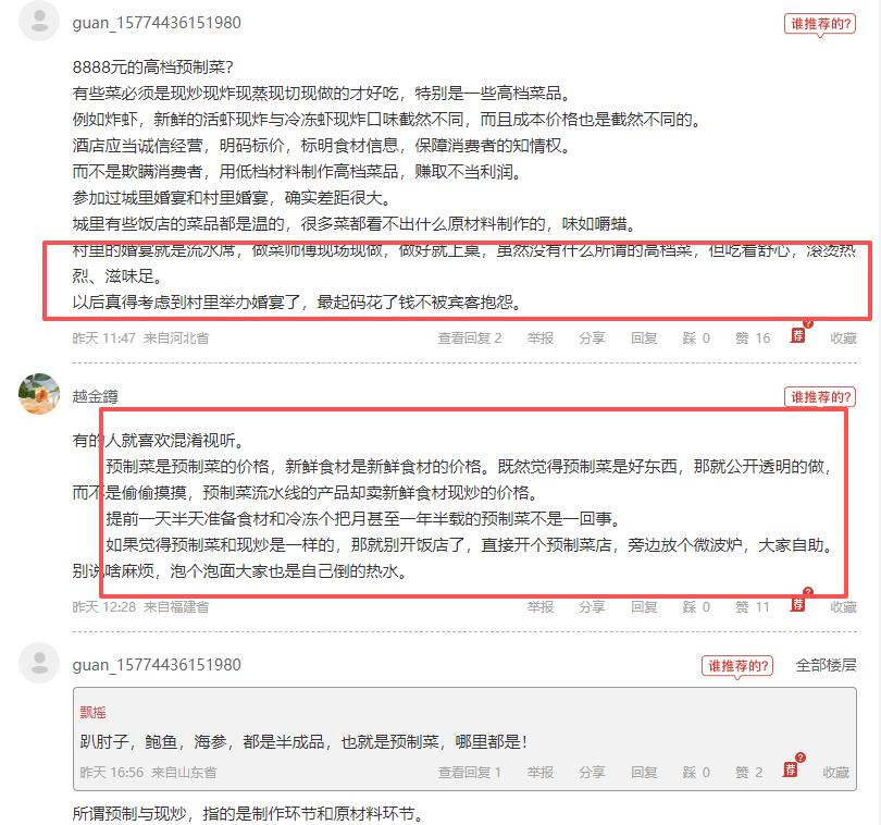 更让人窝火的是价格。8888 元一桌,买的不光是菜,还有食材新鲜度、厨师手艺、服务体验吧?结果给的是微波炉加热的预制菜,成本差了十万八千里。北京市消保委的律师都说了,预制菜和现炒菜成本、口感差太多,商家必须告诉消费者实情,这是《消法》里写着的知情权。