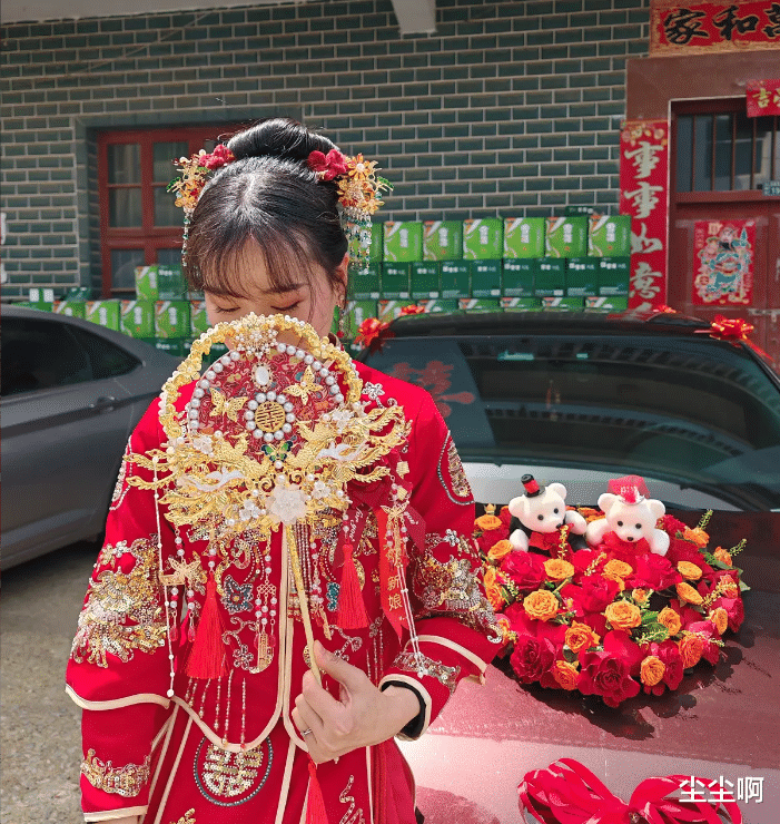 自己在网上买了一套秀禾服和配套的首饰,买了一些化妆的工具,结婚那天就让曾是化妆师的表姐给我化妆,我的小姐妹们给我拍一些视频和照片做留念。