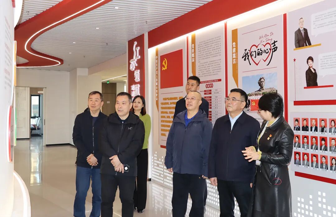 调研组一行先后参观了绿之韵中心数智化科技展厅和党建教育阵地。数智化科技展厅以企业独特的“水之道”文化为核心设计理念,巧妙运用水的流动性与滋养特质作为空间叙事主线,融合东方哲学智慧与西方先进技术,生动诠释了绿之韵的发展理念与文化传承,并通过数字化互动展示系统构建了一个集视觉、听觉、触觉于一体的沉浸式智慧体验空间。调研组在此全面了解了绿之韵的企业文化、发展历程、党建成果、公益实践、产品体系、科研创新与战略规划,胡国安董事长系统介绍了企业的发展脉络,展厅内展示的最新科研突破与创新产品系列,充分彰显了绿之韵在大健康产业的前沿布局与深厚积累。在党建教育阵地,刘云书记向调研组汇报了企业非公党建的特色成果。绿之韵党组织自2006年成立党支部后,历经多年发展,已构建起以党委为核心、工会与公益基金会协同的新格局。企业通过推进“三色、三有、三亮”工程及“指导式、责任式、温情式”管理等系列创新举措,形成了特色党建品牌,有力推动了党建与发展的深度融合。