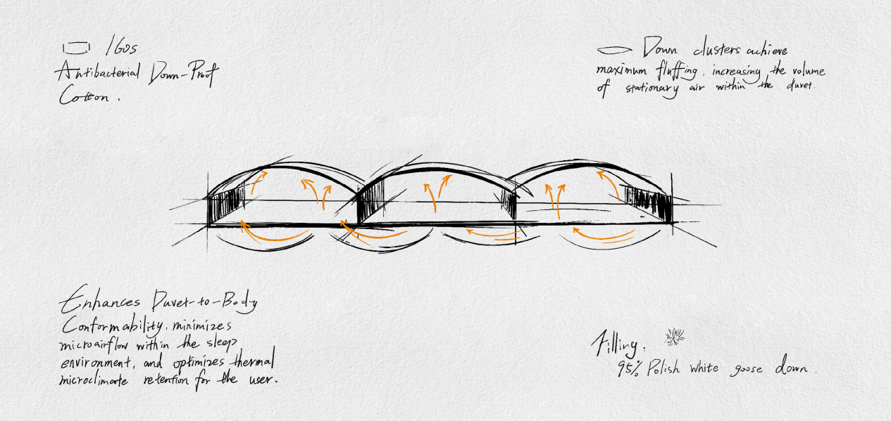此外,SIDANDA Sleep Lab®研发团队从越冬天鹅羽毛的自然结构中汲取灵感,创新推出错位缝制的上下双层结构,有效锁定热量并提升防绒性能,解决了行业长期面临的“热流失”难题。