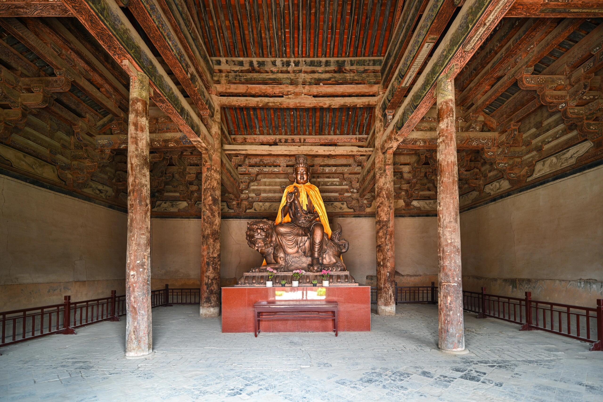 站在殿内,久久不愿移开目光,仿佛被这道凝固的彩虹牢牢吸引。那些色彩在光影中流转,那些图案在梁架间跳跃,让人仿佛置身于一个奇幻的佛国仙境。此刻,没有导游的讲解,没有人群的喧嚣,只有自己与千年彩画对视,心灵在这份极致之美中得到净化与升华。不得不感叹,真正的美从来不需要刻意宣扬,它就那样静静地存在着,跨越千年时光,依旧能直击人心最柔软的地方。
