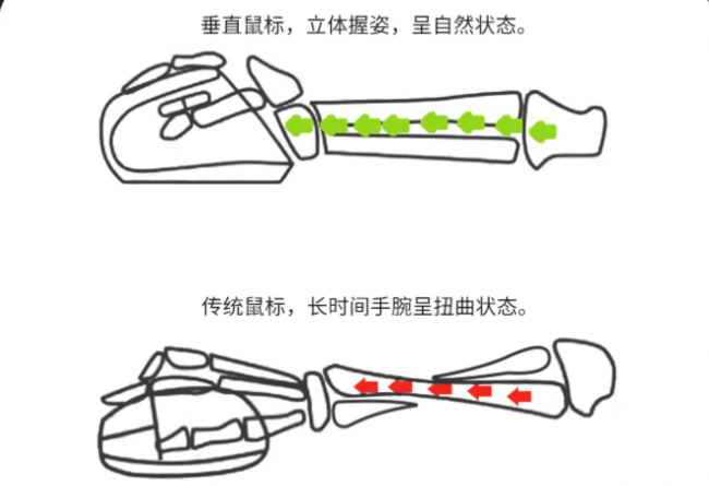 1、普通鼠标为追求轻薄简约,多采用扁平对称造型,长时间使用会强迫手腕内扣、前臂肌肉持续紧张,不仅容易疲劳,还会压迫腕管神经,大幅增加鼠标手、腱鞘炎风险。