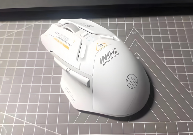 在功能层面,英菲克 IN9 支持有线、2.4G无线以及蓝牙5.0三种连接方式,使用场景比较灵活,既可以作为固定桌面设备,也可以在多设备之间切换。配备6个自定义按键,可通过驱动进行功能设置,在办公或游戏中都能提升操作效率。细节上加入了RGB灯效(支持多种模式切换)、铁氟龙脚贴以及防滑滚轮,整体更偏向“功能齐全”的路线,视觉和手感都有一定加分。不过从实际体验来看,RGB灯效对续航会有一定影响,满电约100小时在同类产品中属于中等水平;同时外观偏游戏风格,如果是在偏商务或简洁环境中使用,可能会显得不太协调。
