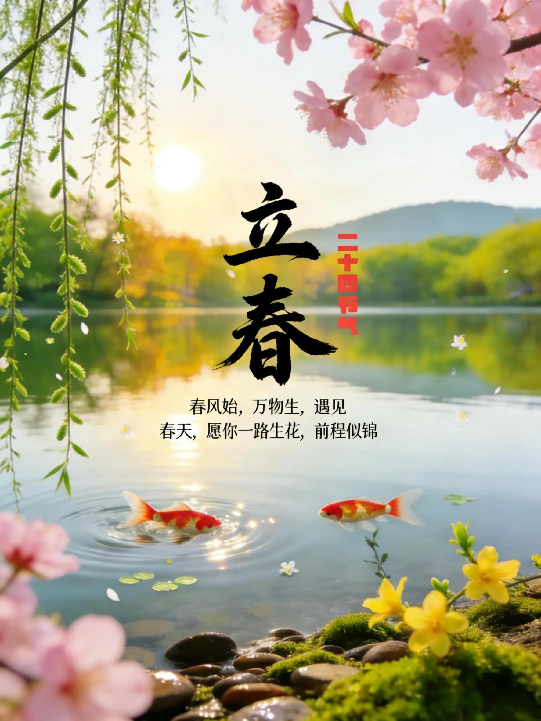 立春到,春光照;烦恼消,好运绕。万物随春醒,美好皆发生,愿我们带着春日的温柔与勇气,奔赴每一个热爱,不慌不忙,慢慢前行,日子如春风般温柔,岁岁皆欢畅。愿你四季安康,万事顺意。早安,不负春光!