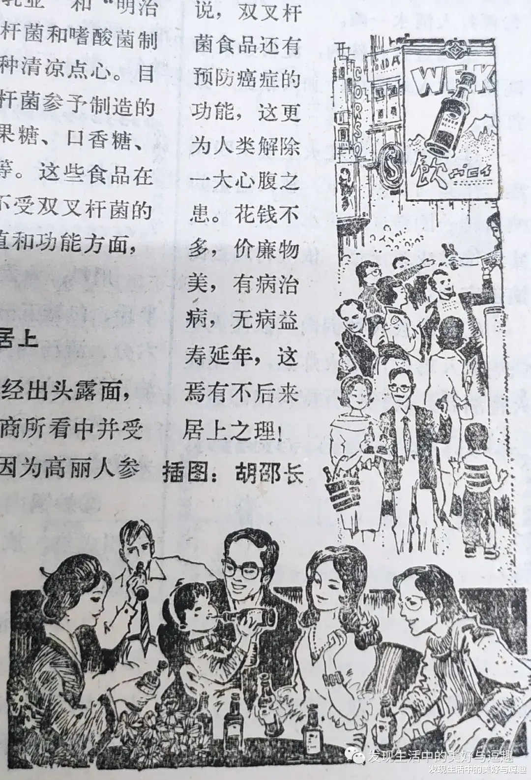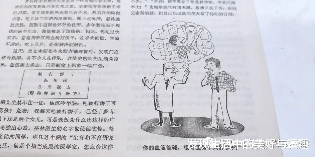 这个文章讲了个梳打饼干的好处,由于经常吃梳打饼干 所以身体偏碱性体质容易生大胖小子哦。那会儿看着这幅画心想这男的得吃多少饼干啊?一面墙?